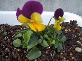 | パンジー(2月) まとまって咲くととてもきれいです。ツマグロヒョウモンという幼虫は,この花しか食べないのです。 |