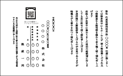 会葬礼状への遺影QRコード掲載例