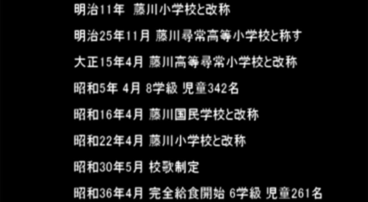 創立から閉校までの学校や児童の様子及び卒業集合写真で構成し校歌+オリジナルソング挿入