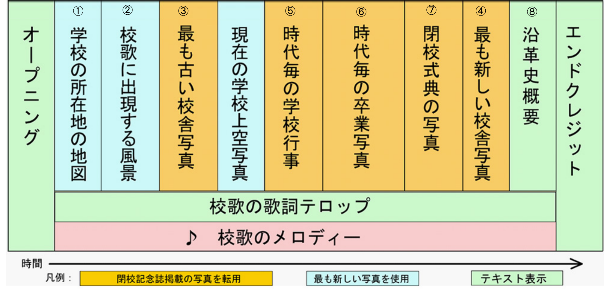 映像に合わせ、BGMとして校歌を流します。