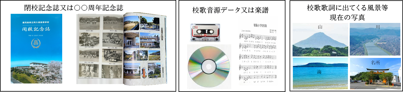 ②校歌の音源(※音源がない場合は、校歌の楽譜をご用意ください)